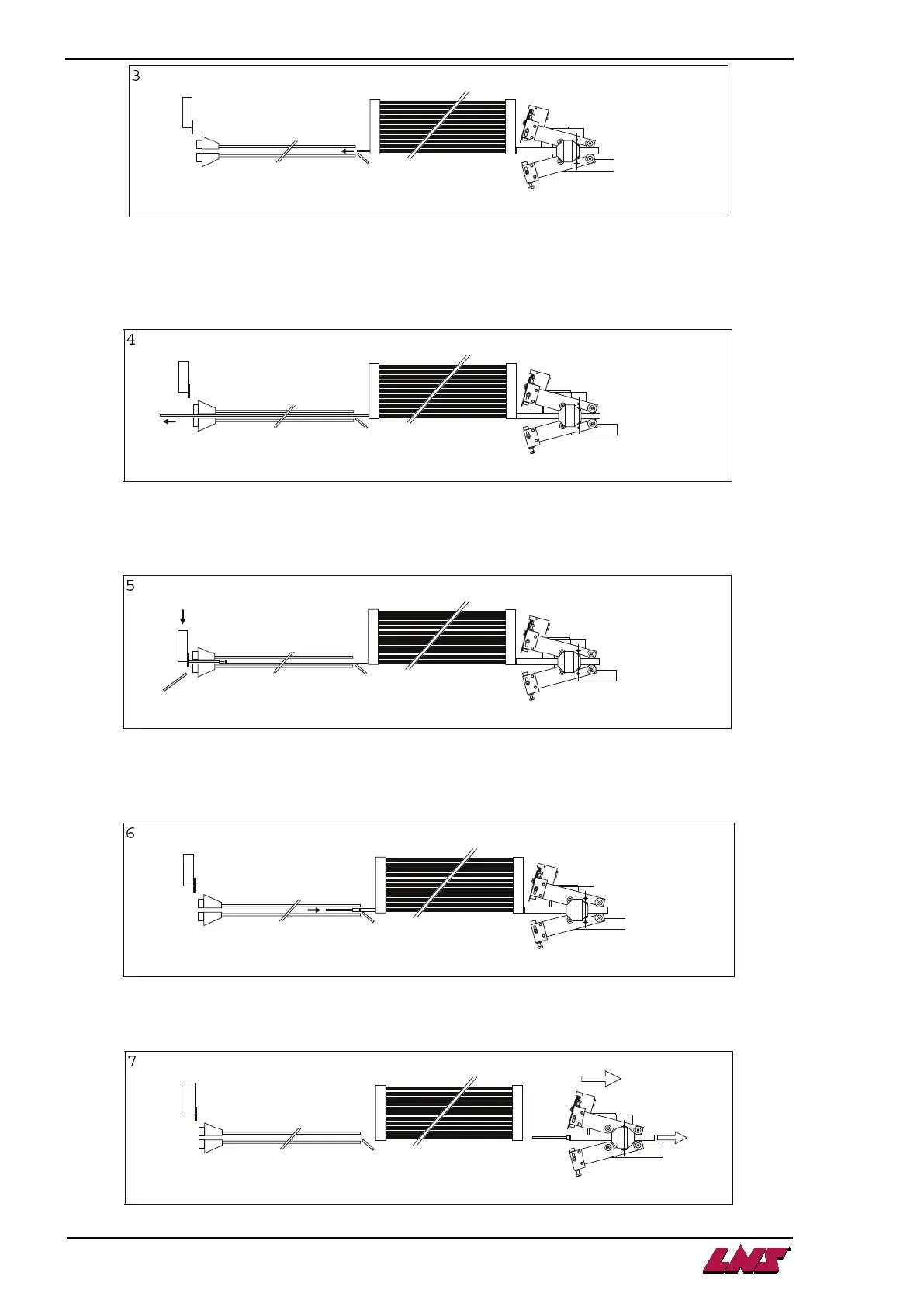 Drawn by the retraction cable, the pusher moves back and recovers the remainder of the