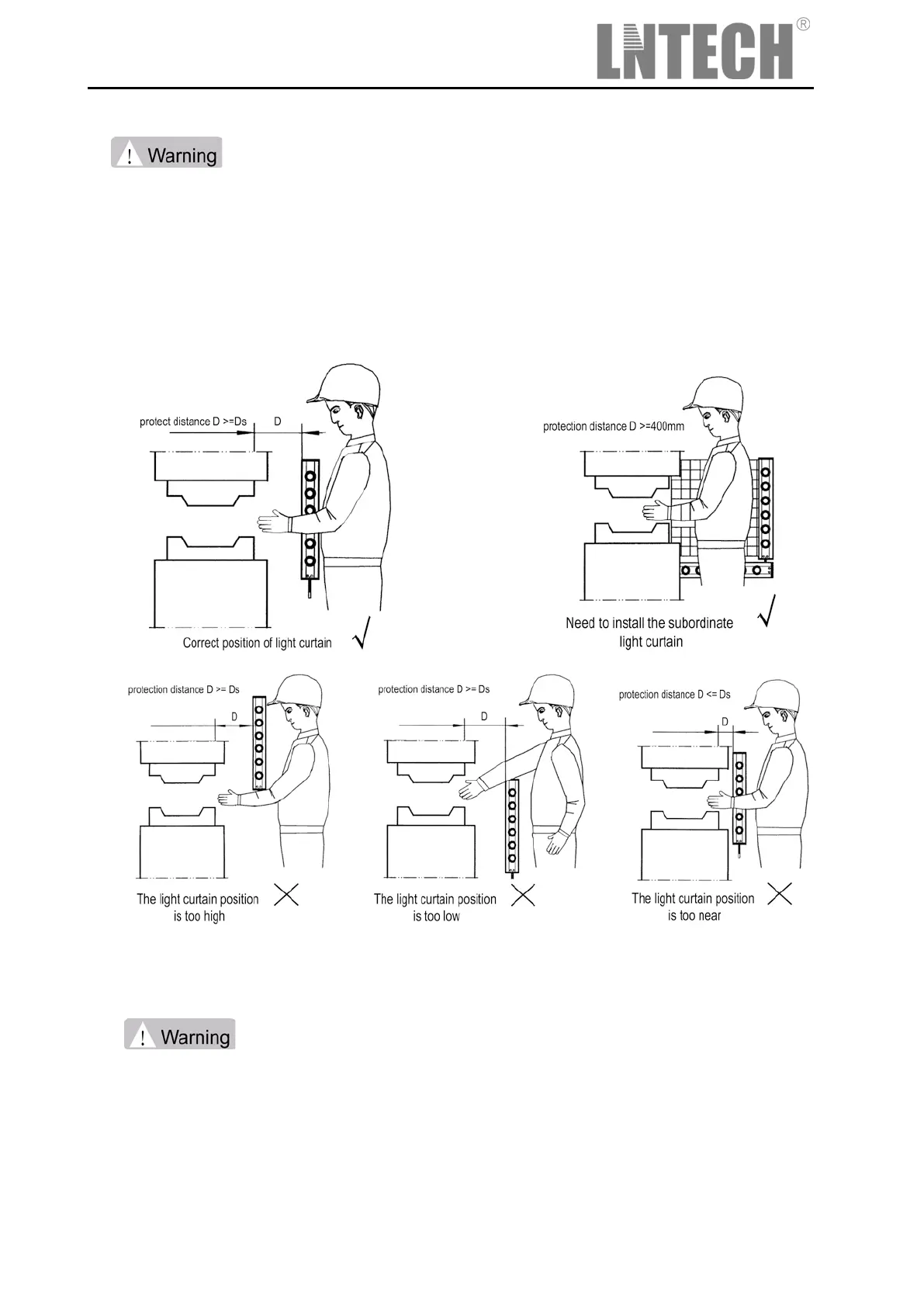 The protection height of light curtain used on press must be insured: