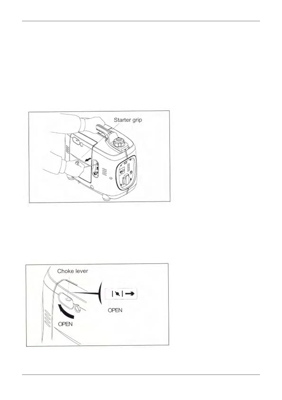 Starterkabel kräftig in Richtung des Pfeils (siehe Zeichnung) ziehen.