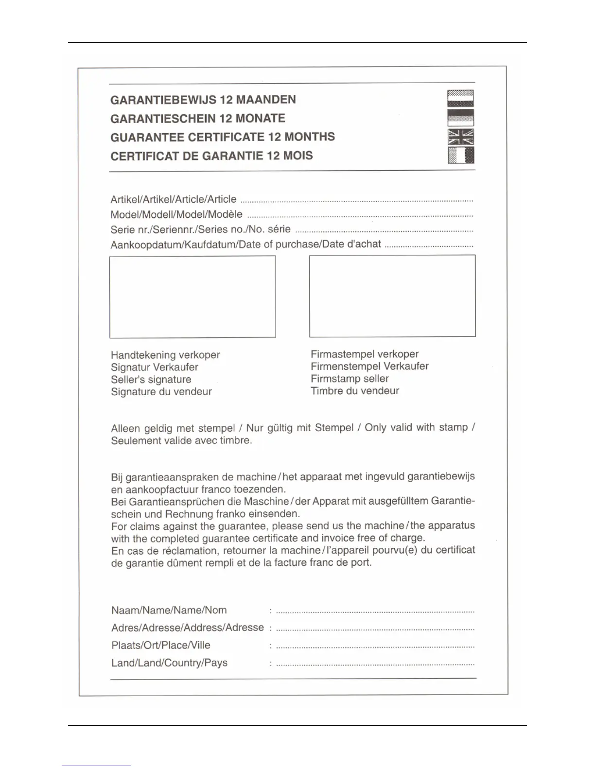 Load UP 76000 - Warranty and Compliance Information; GUARANTEE CERTIFICATE 12 MONTHS