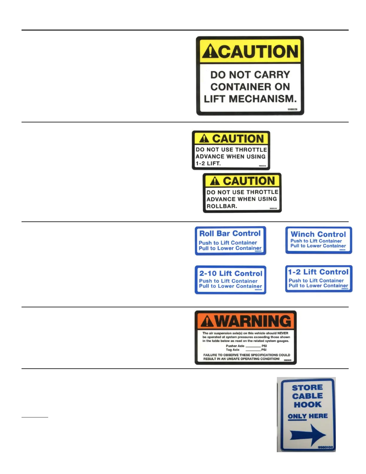 THESE DECALS LABEL THE CONTROL LEVERS FOR THE