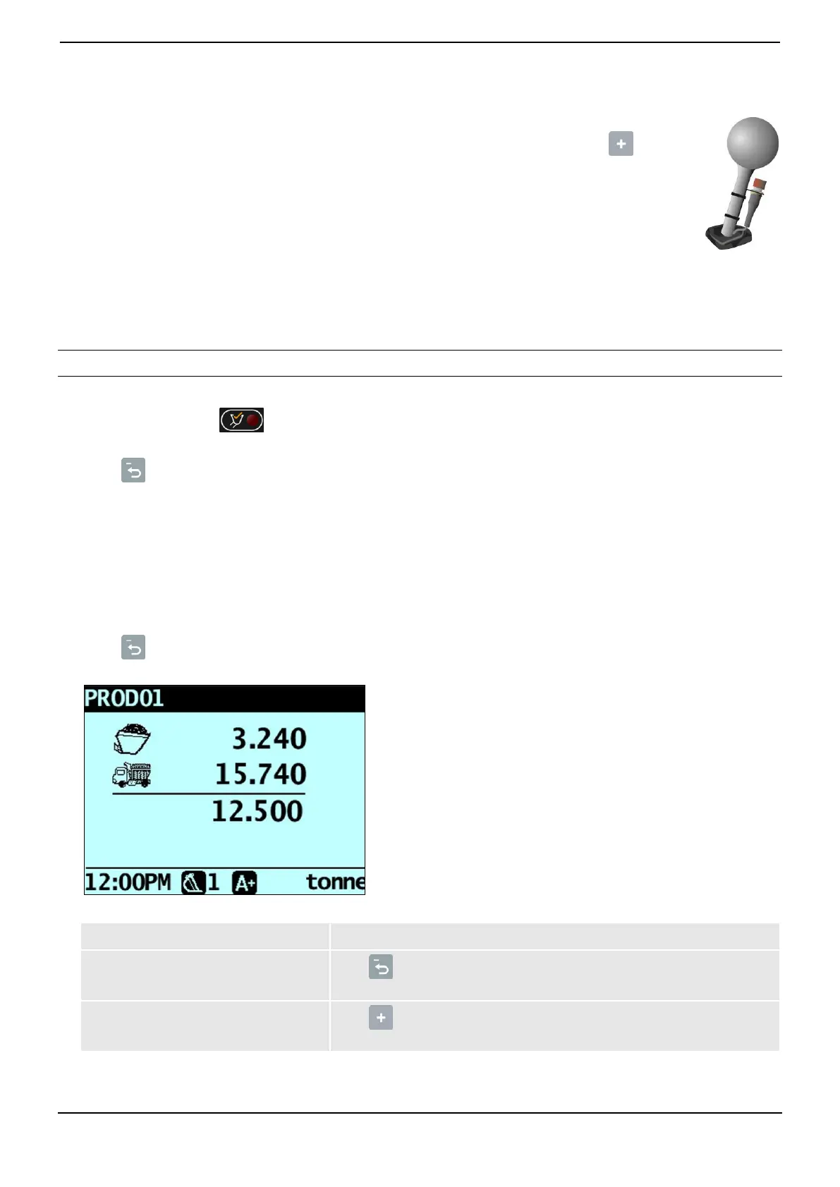 The Recall function is equivalent to lifting the same load again and can be used to correct mistakes. The last bucketload can be