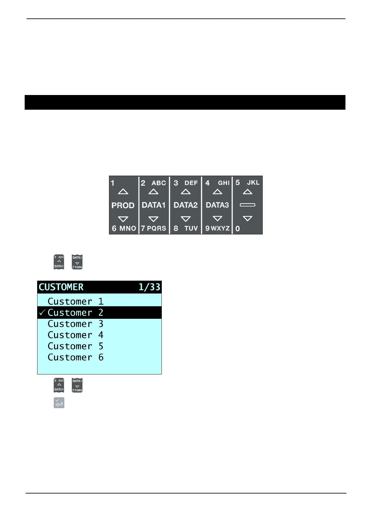 2) Press or to scroll up or down the list of customers until the correct customer is selected.