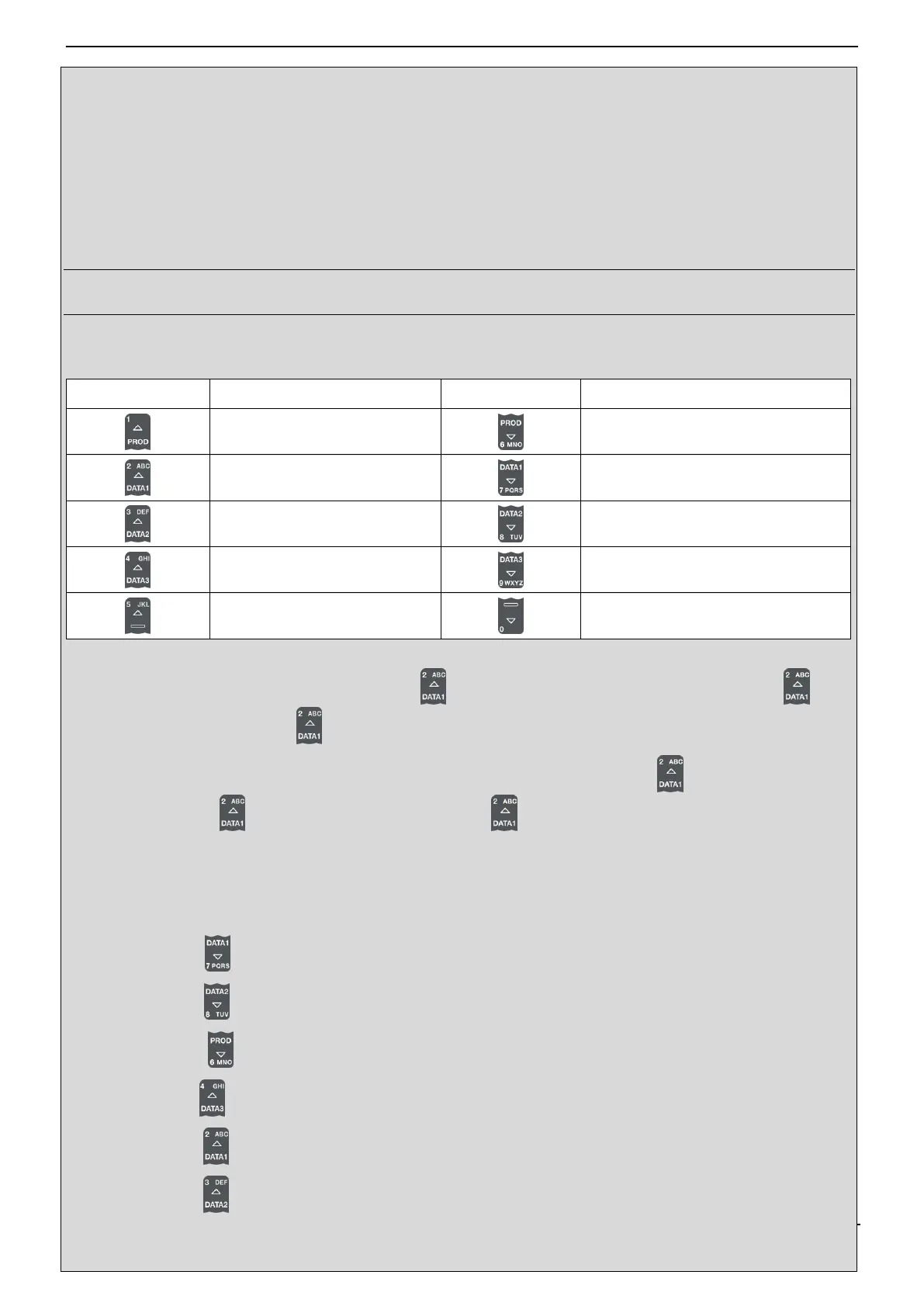 The Indicator has a keypad of buttons, with each used to select and enter a range of characters. When a button is pressed,