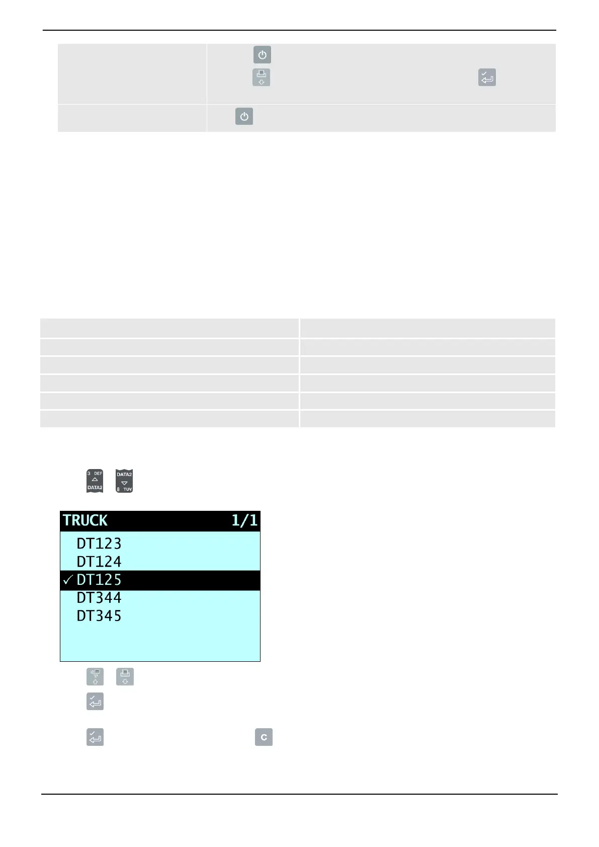 2) Press or to scroll up or down the list of trucks until the correct truck is selected