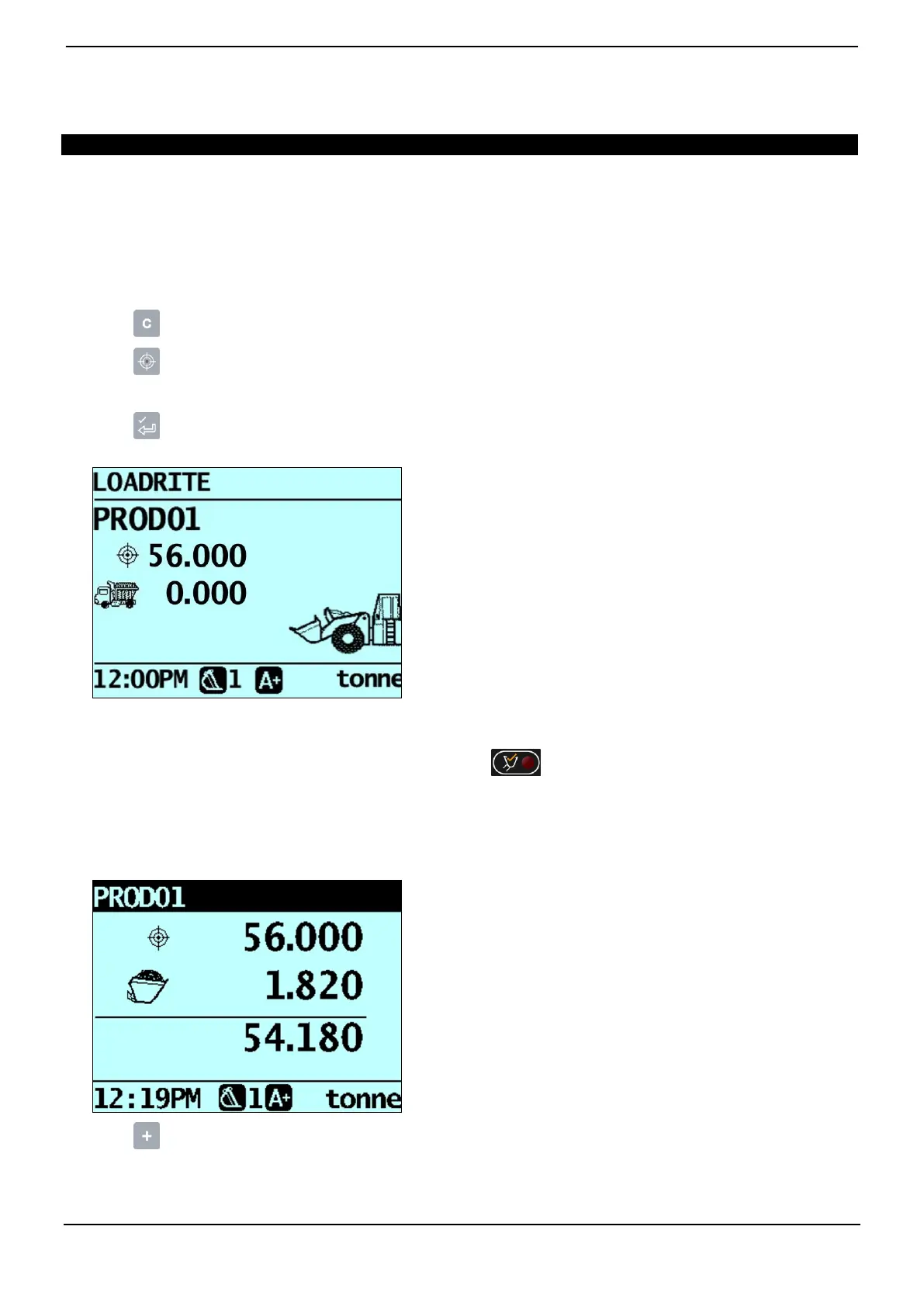 Before loading, the operator enters a target weight value. Each time a bucketload is added, the target value is reduced by that