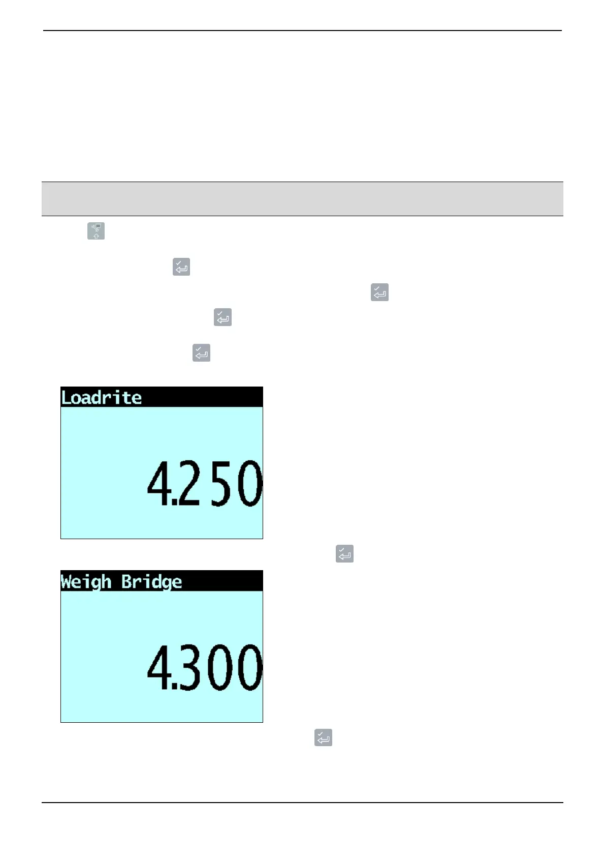 7) Enter the total weight provided by the Loadrite Indicator, then press .