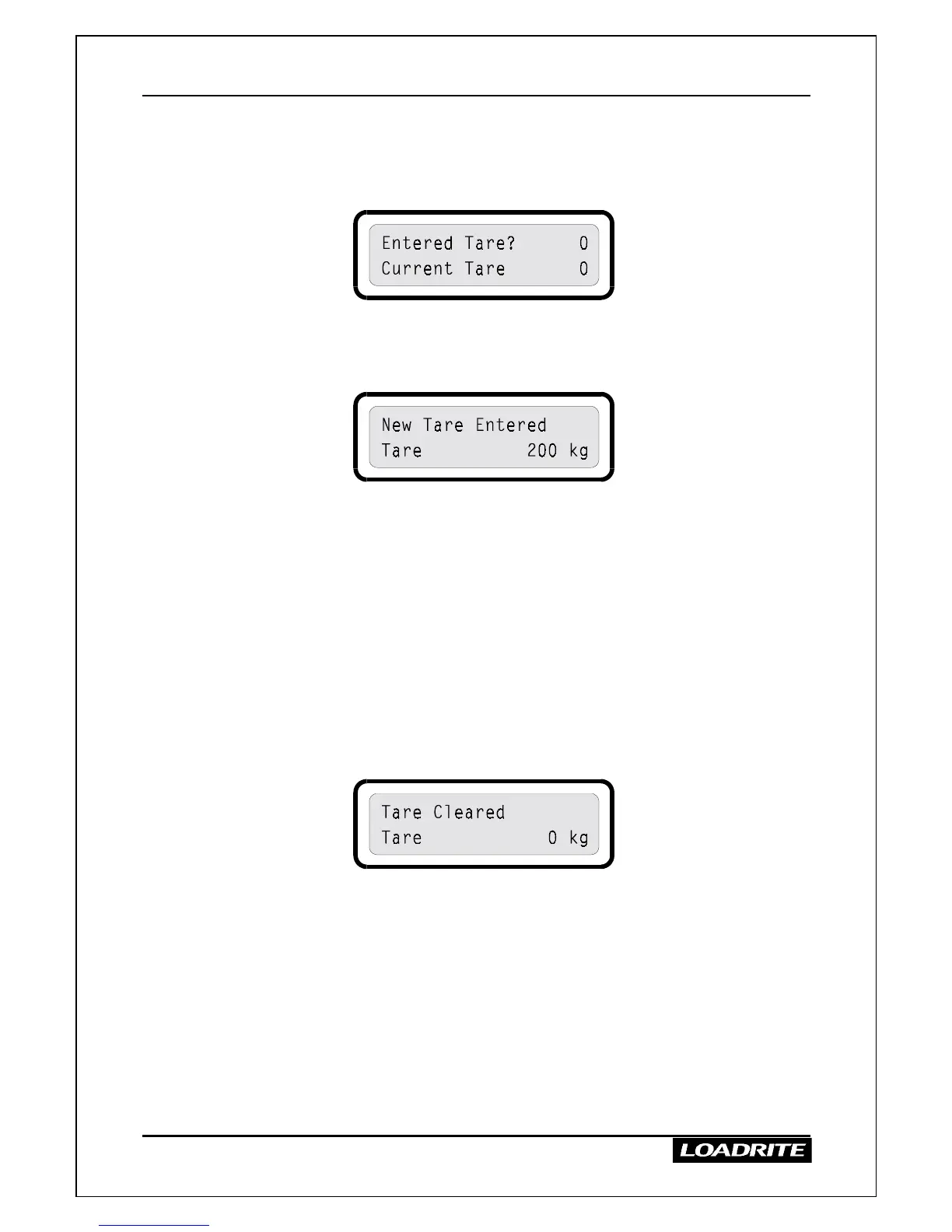 To clear a tare, use the keyboard as described above to enter a tare of zero.