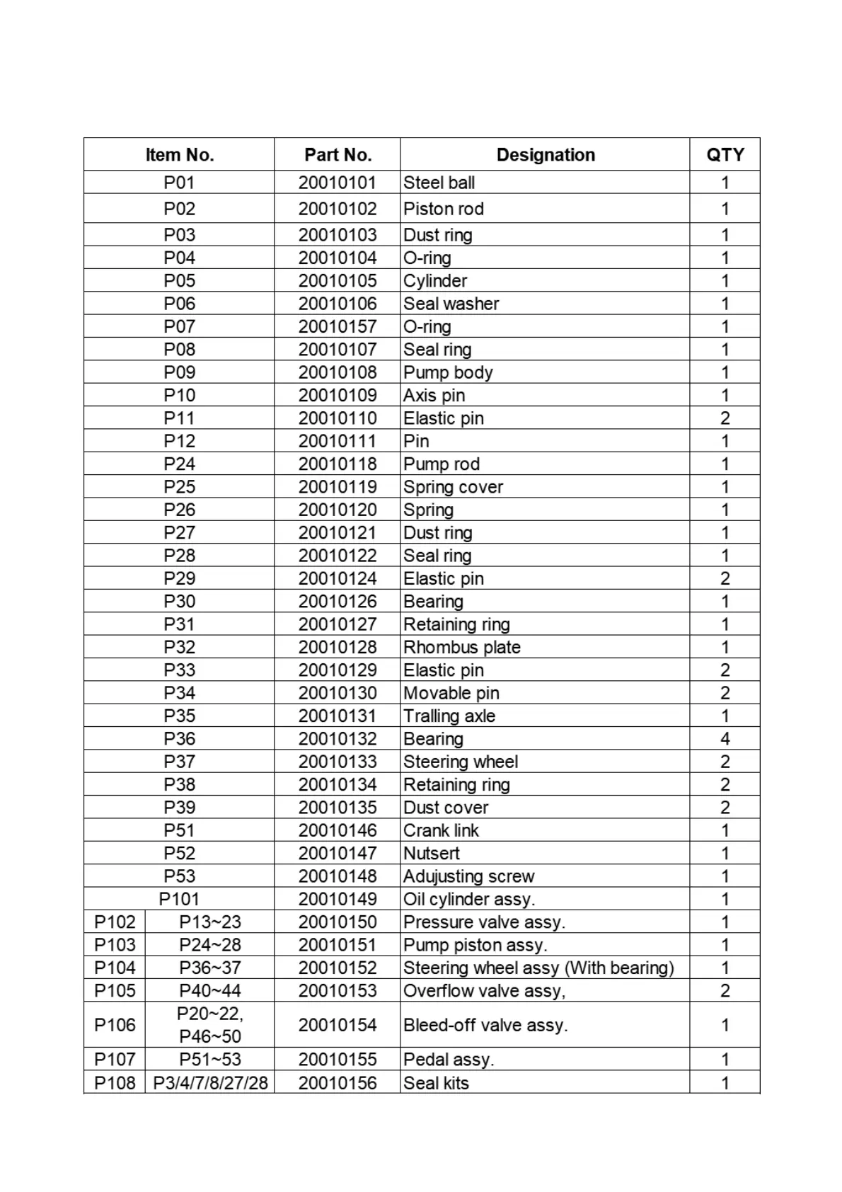LoadSurfer WH-25ES - Component Lists; Pump Assembly Parts List