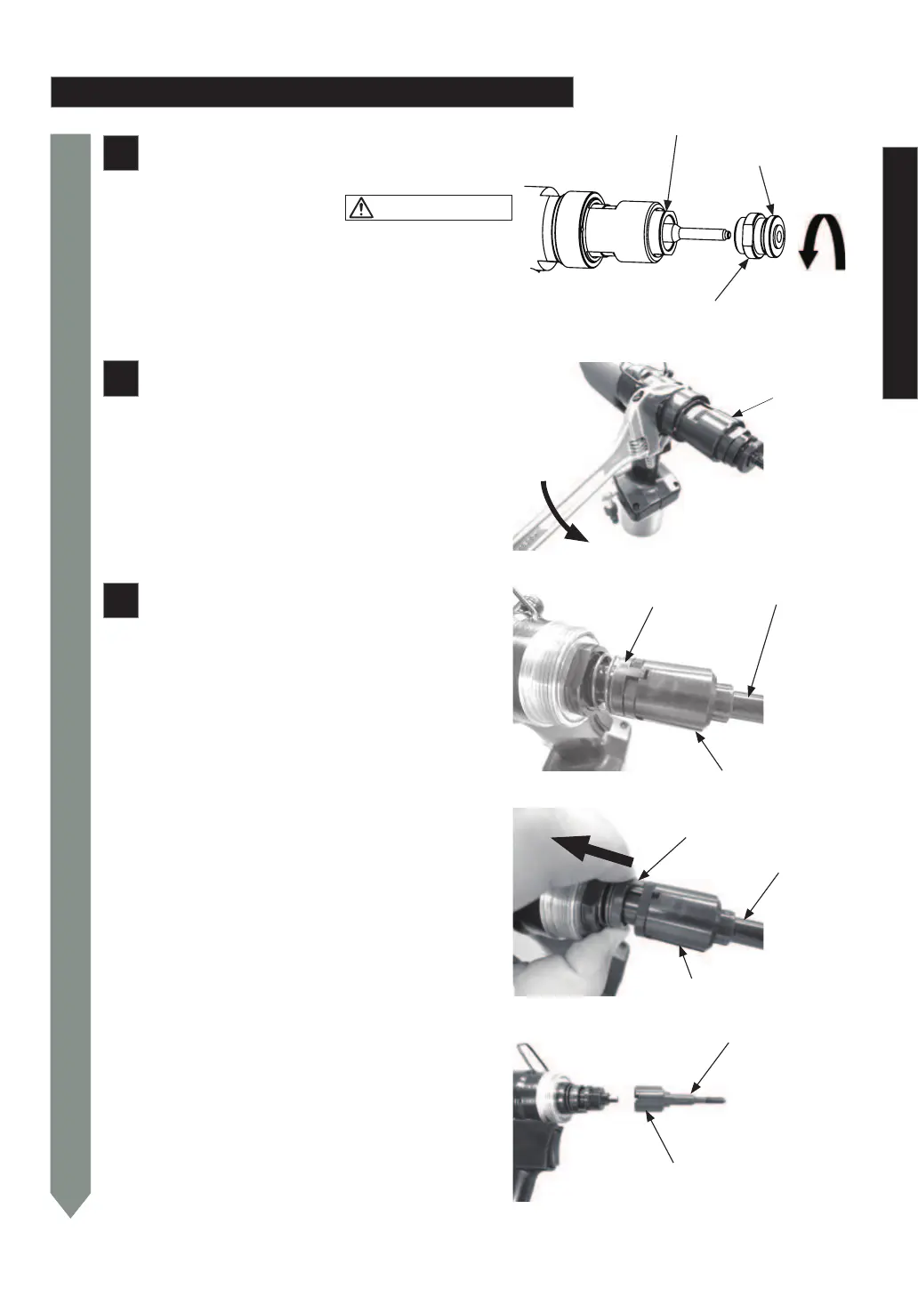 ・エアーが供給された状態で手入れや分解を行なうと、部品の飛び出し、オイルのふき出し、予期