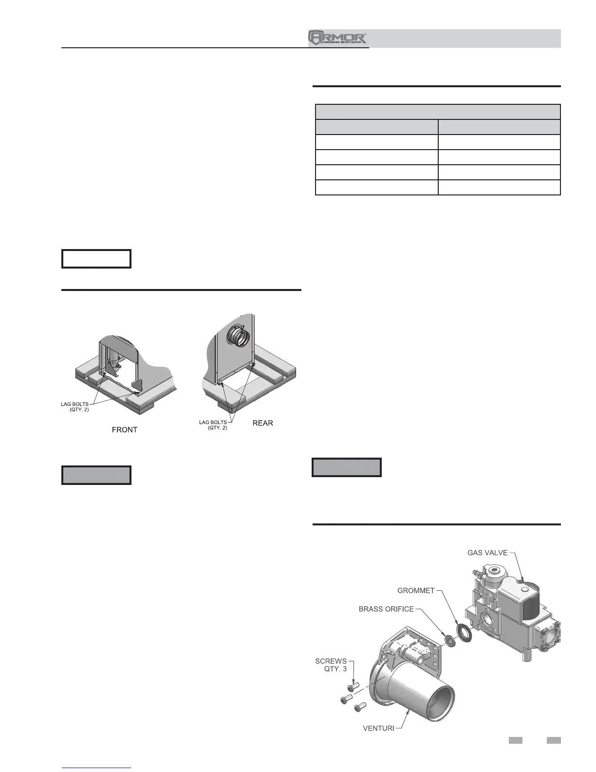 matches water heater size (Models 151 –