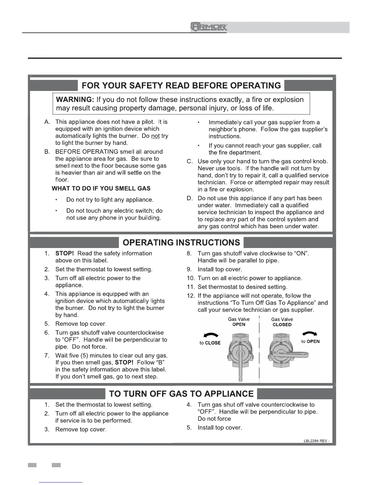 Figure 10-3 Operating Instructions - Models 400 - 801