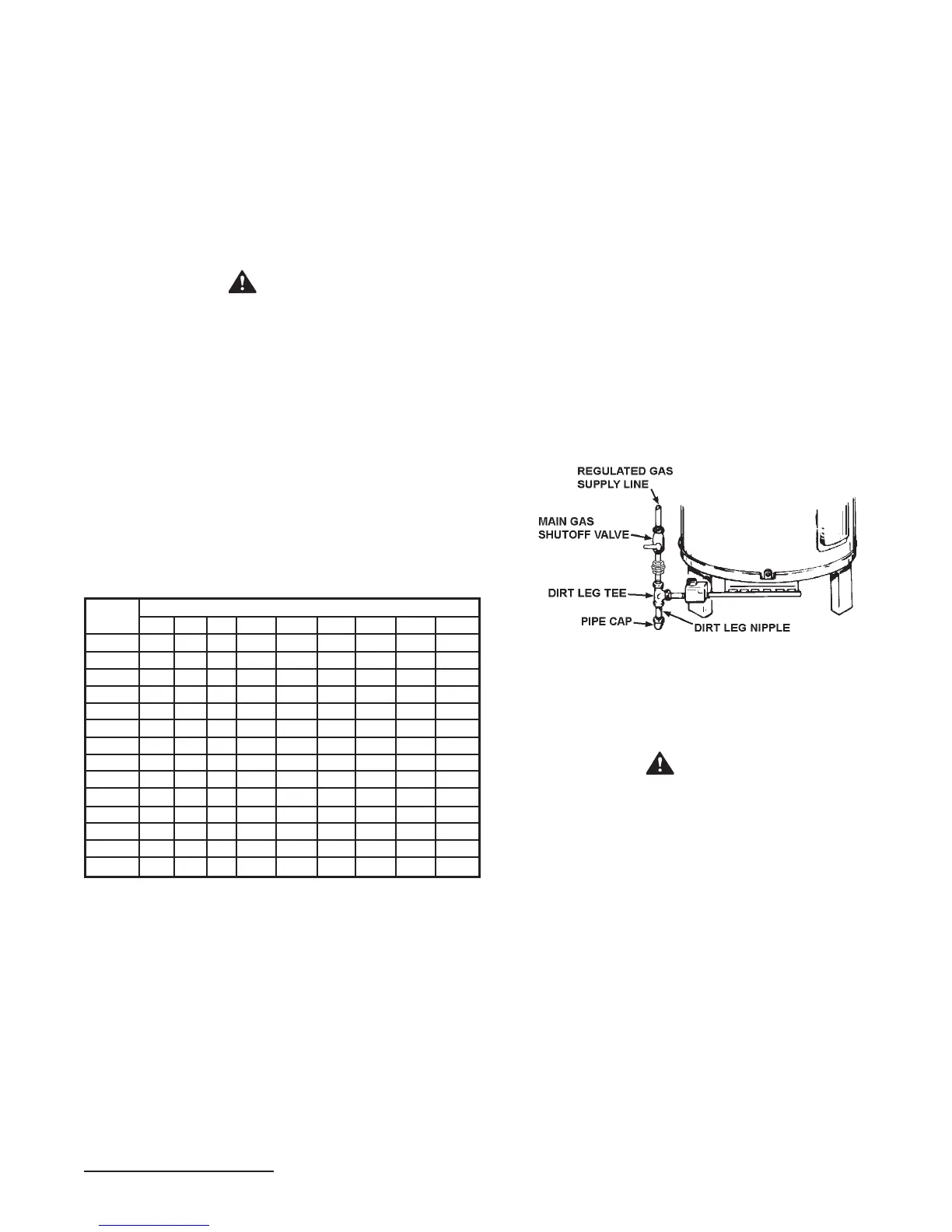 TABLE 2 - GAS SUPPLY LINE SIZES (IN INCHES)*