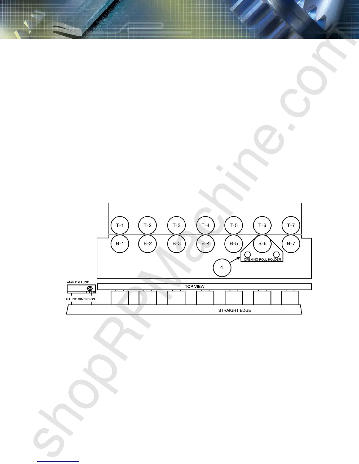 marked “T” should be mounted on the top shafts and “B” rolls on the bottom shafts, in numerical