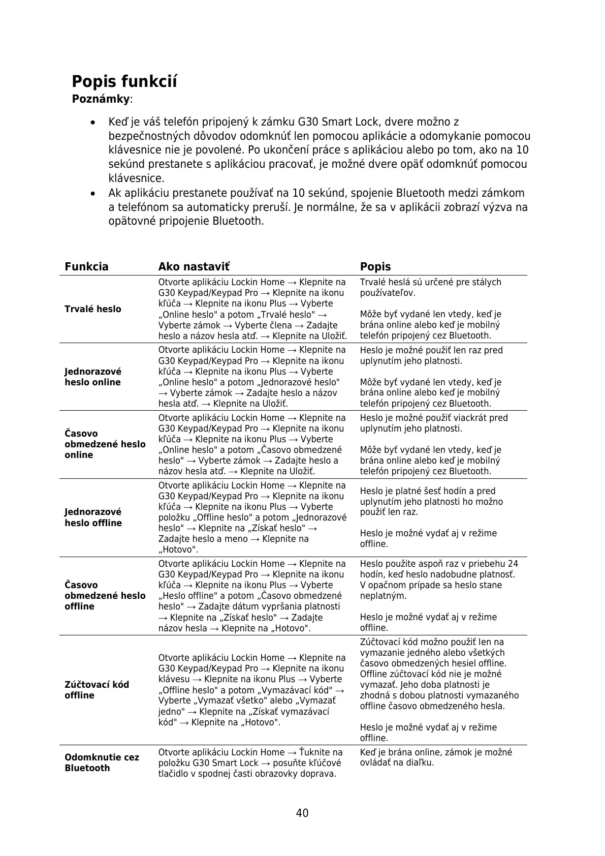 bezpečnostných dôvodov odomknúť len pomocou aplikácie a odomykanie pomocou