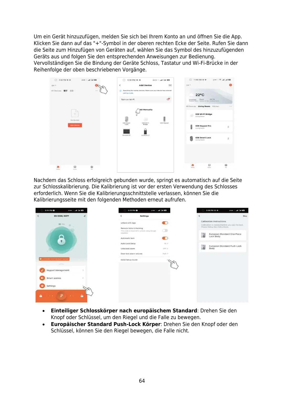 zur Schlosskalibrierung. Die Kalibrierung ist vor der ersten Verwendung des Schlosses