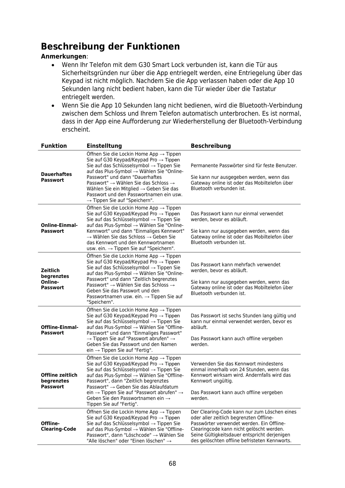 Sicherheitsgründen nur über die App entriegelt werden, eine Entriegelung über das