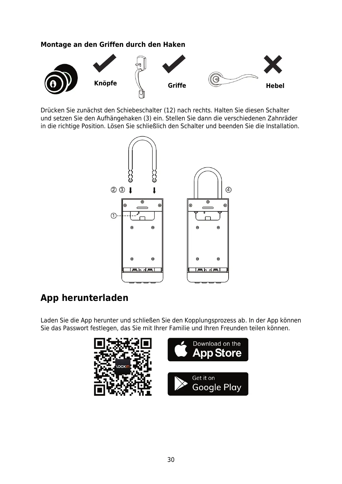 Montage an den Griffen durch den Haken