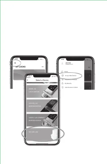 Lockly Secure Link+ WIFI-RF - Configuring Your Secure Link+ WIFI-RF Hub; Connect to 2.4 GHz Wi-Fi Network; Select Secure Link+ Hub in App