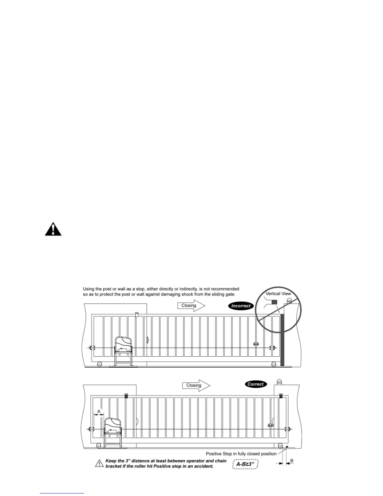 The gate sliding track is linear and horizontal, and the wheels are suitable,the gate should be mounted and