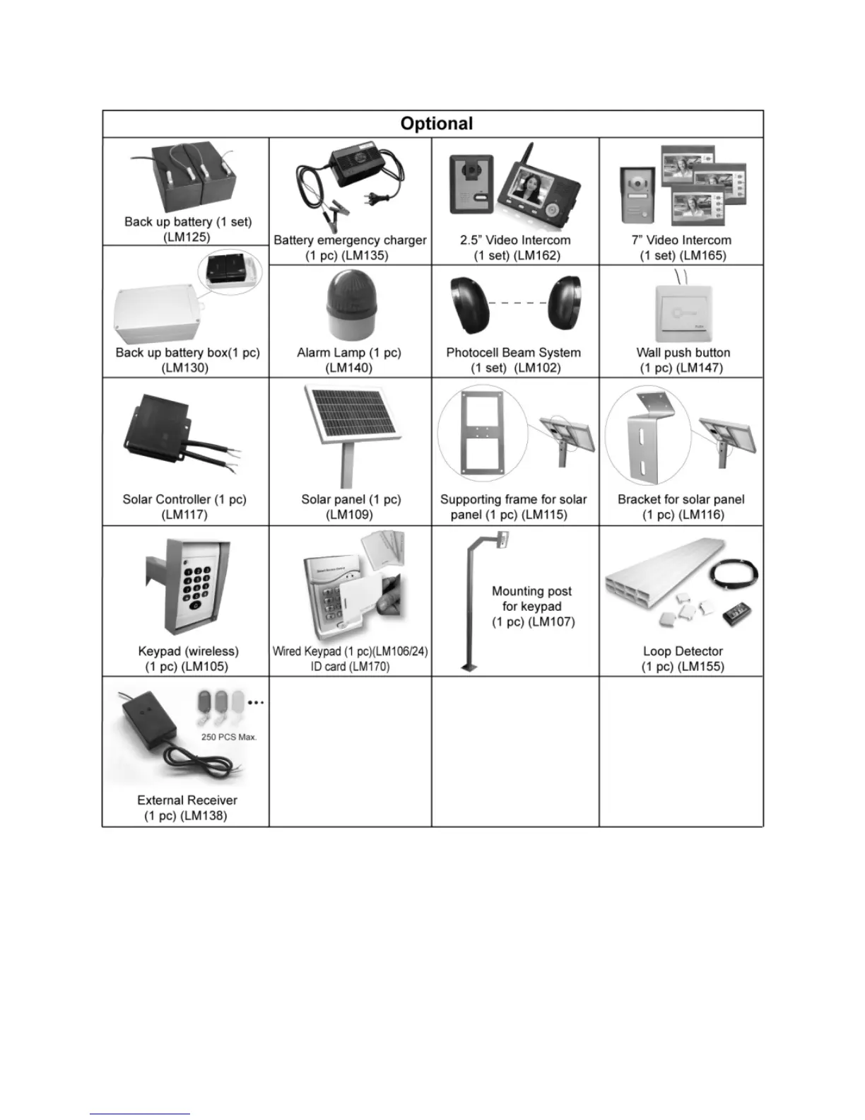 LockMaster DSC 1000 - Optional Accessories Parts List