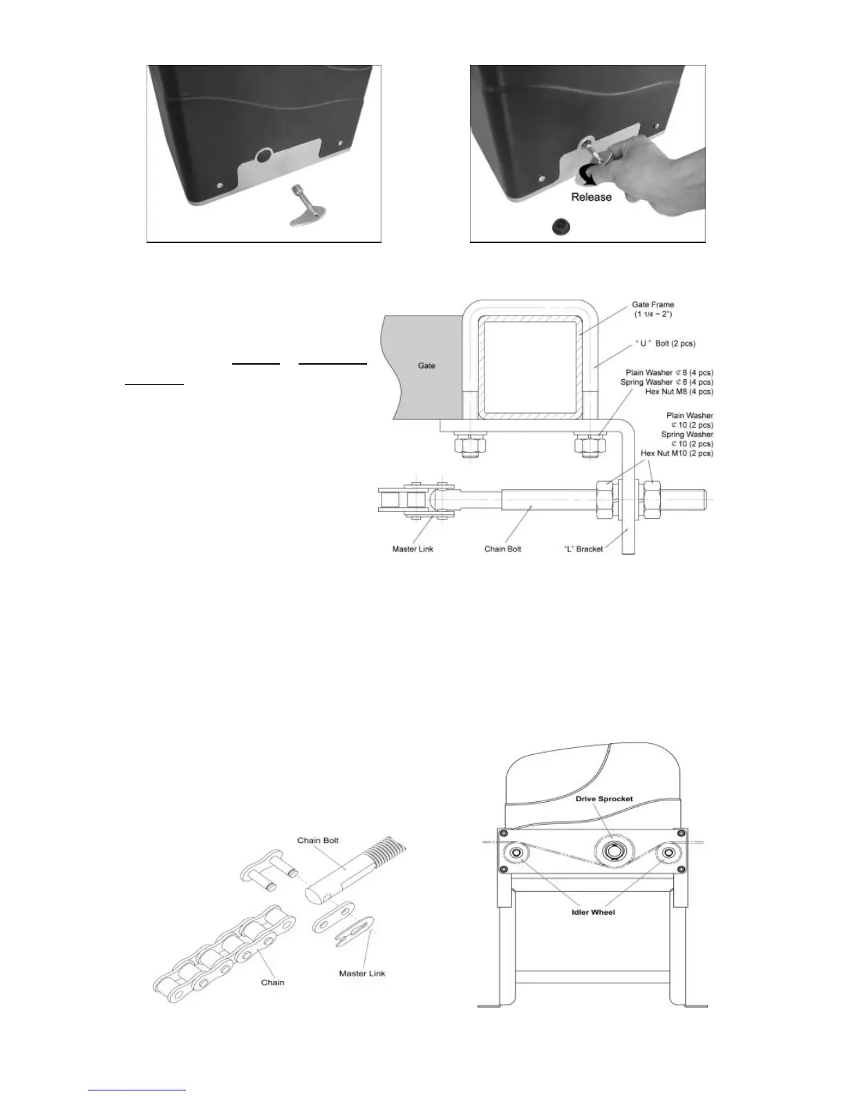 3). Connect second chain bolt with another end of chain from chain box, then attach bolt to the L bracket on
