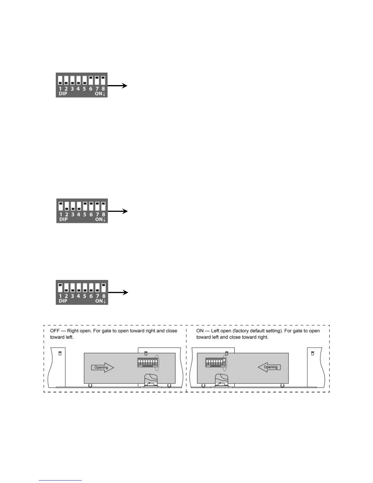 NOTE: The auto close function would be disabled if both DIP switches are turned to off (factory