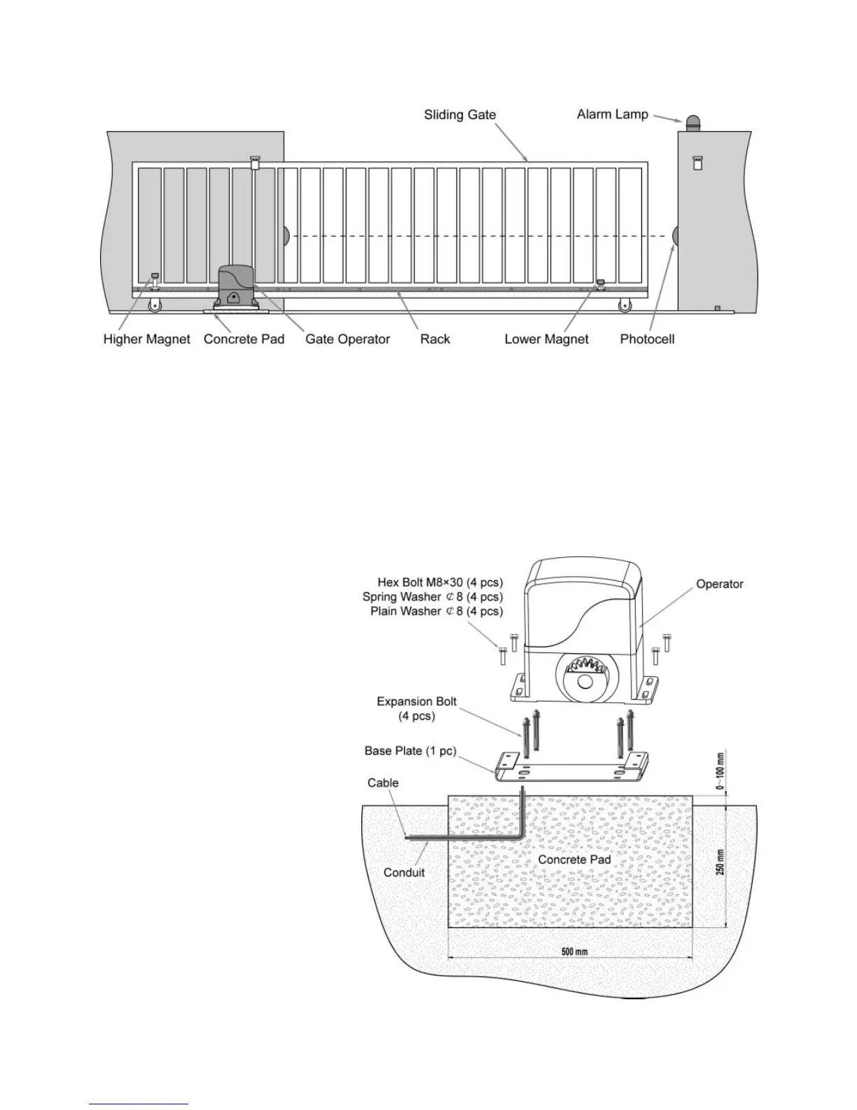 *Be sure that the opener is installed in a level and paralleled position and is properly secured.