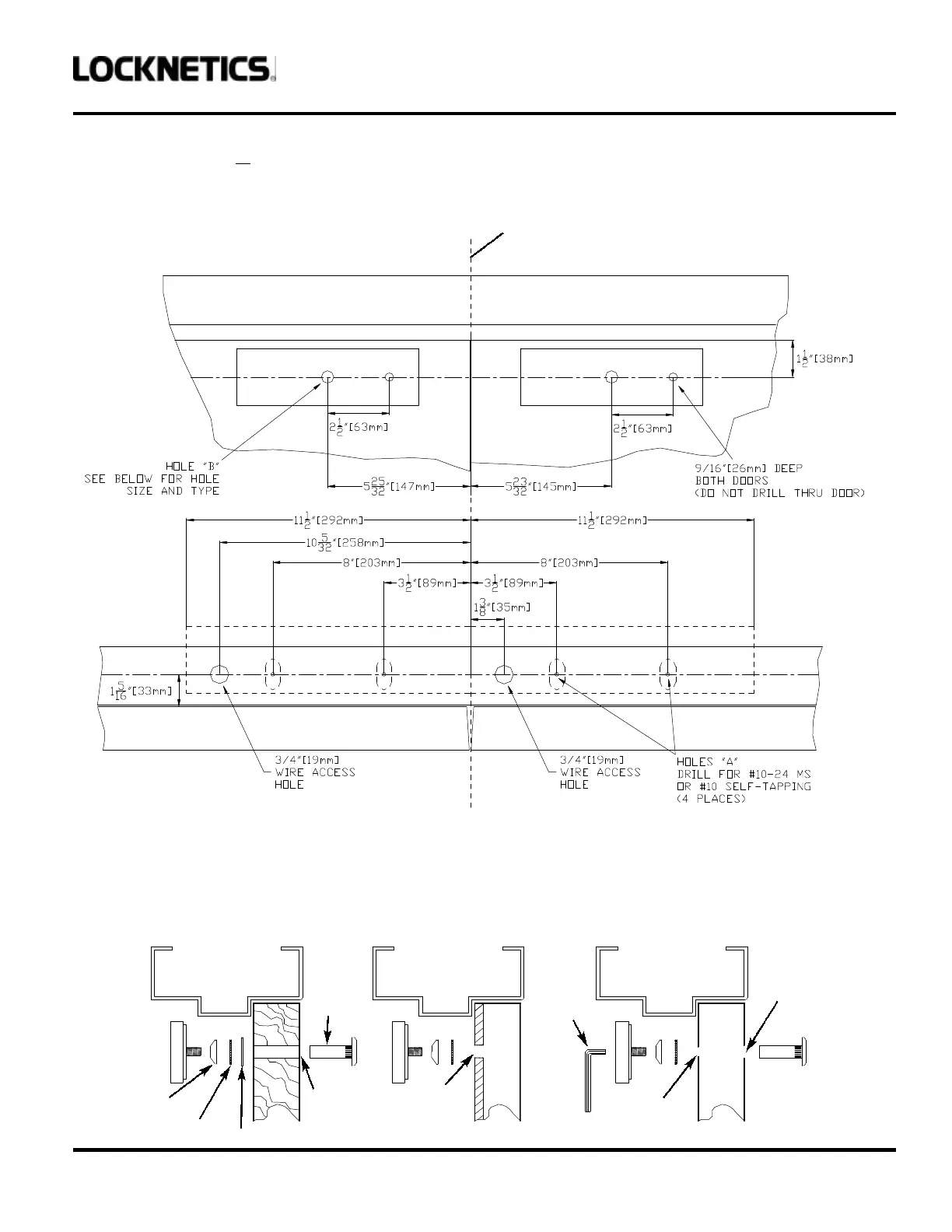 HOLE “B” FOR MOUNTING ARMATURE IS DETERMINED BY DOOR TYPE: