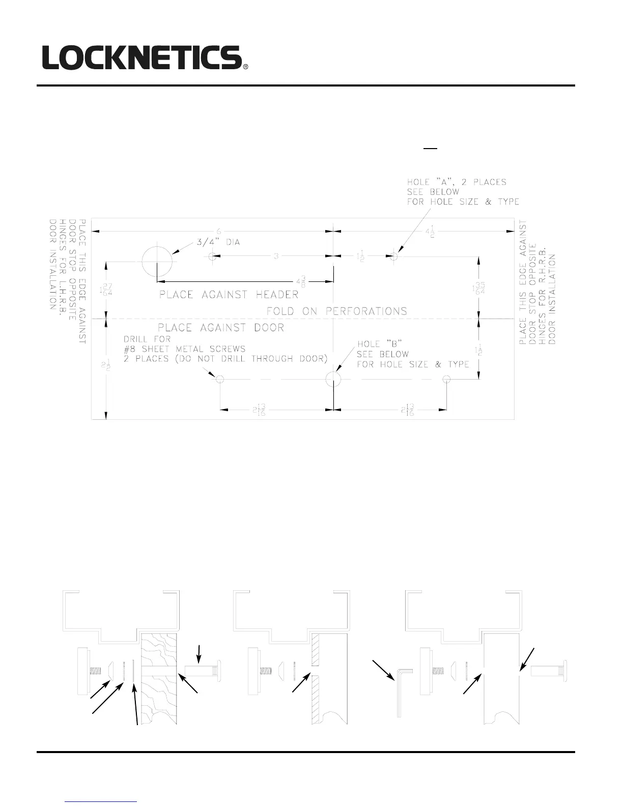 ing screws. Armature mounting hole "B" is determined by the door type (see below).