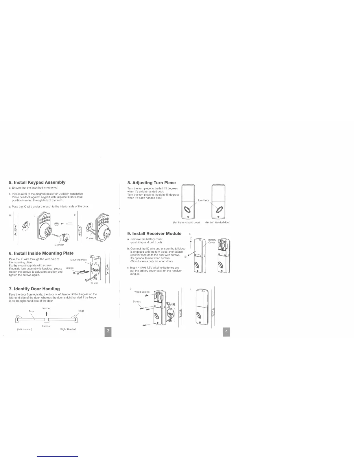 LockState LS-DB500 - Install Keypad Assembly; Install Inside Mounting Plate; Install Receiver Module
