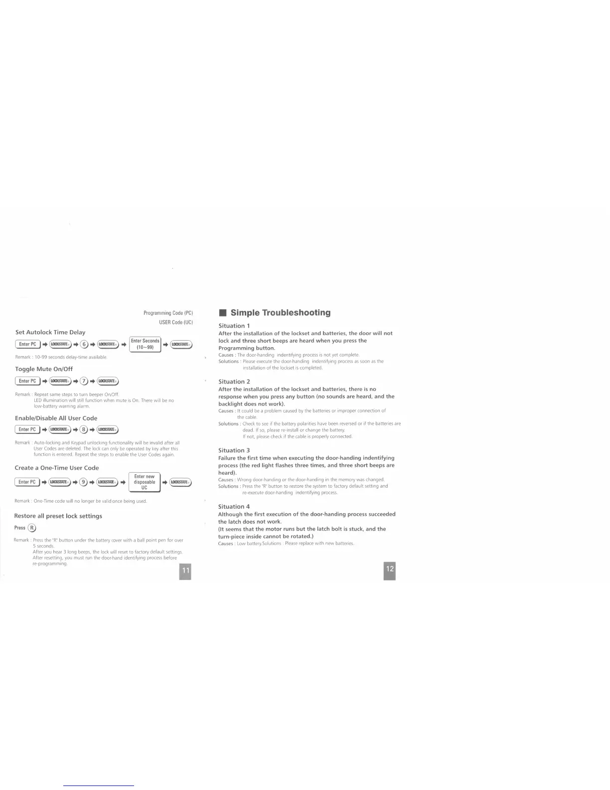 LockState LS-DB500 - Setting Autolock Time Delay; Toggling Mute Mode; Temporarily Disabling User Codes; Creating One-Time Access Codes