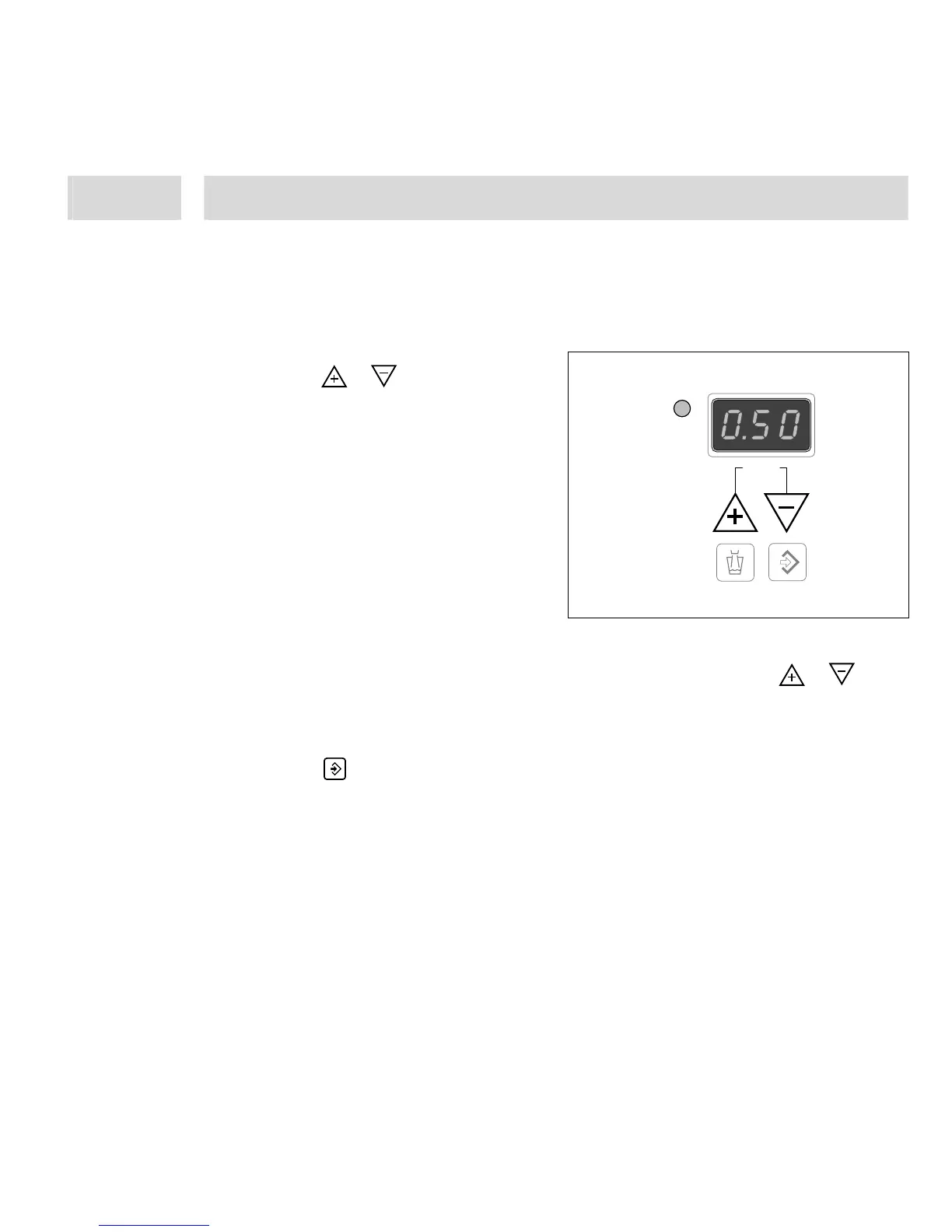 • Press button . The indication of the dispensing time in the digital display stops blinking.