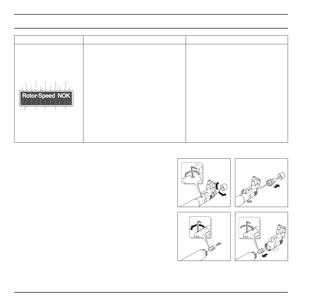 Rotor does not run or – Controller incorrectly adjusted. • Check the settings in the PERIPHERY