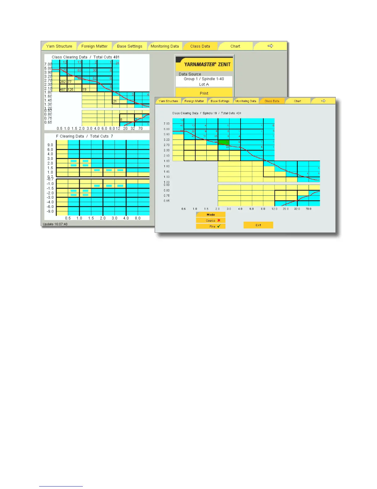 YarnMaster Zenit classifies all yarn faults in every group and