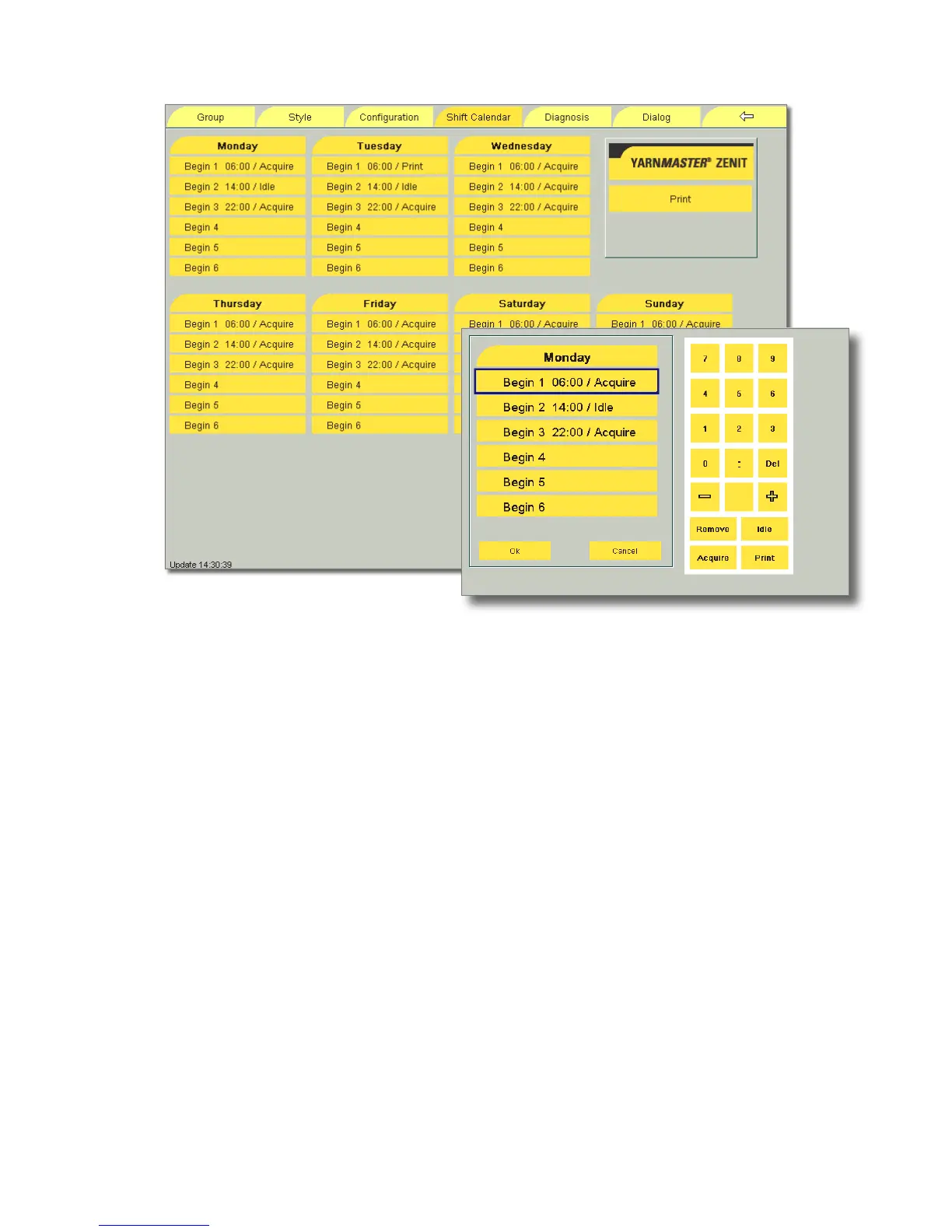 The shifts are recorded with the shift calendar. It is possible to record, print or not to record the production and clas-