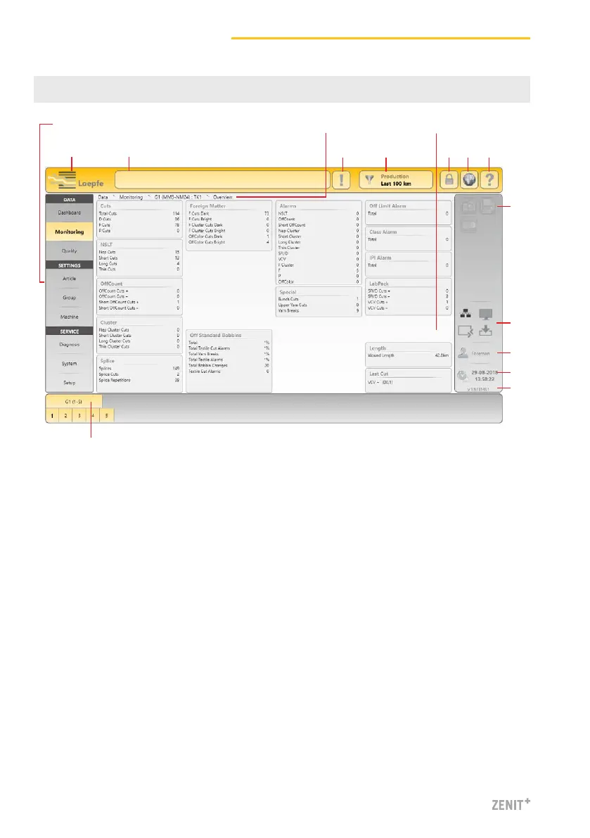 12 Connection status (Ethernet / MillMaster TOP / Remote / Data Exist)