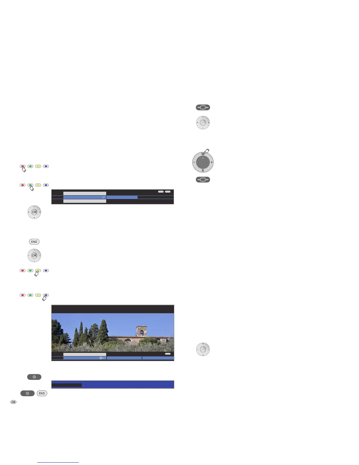 Functions of the coloured buttons in TV mode