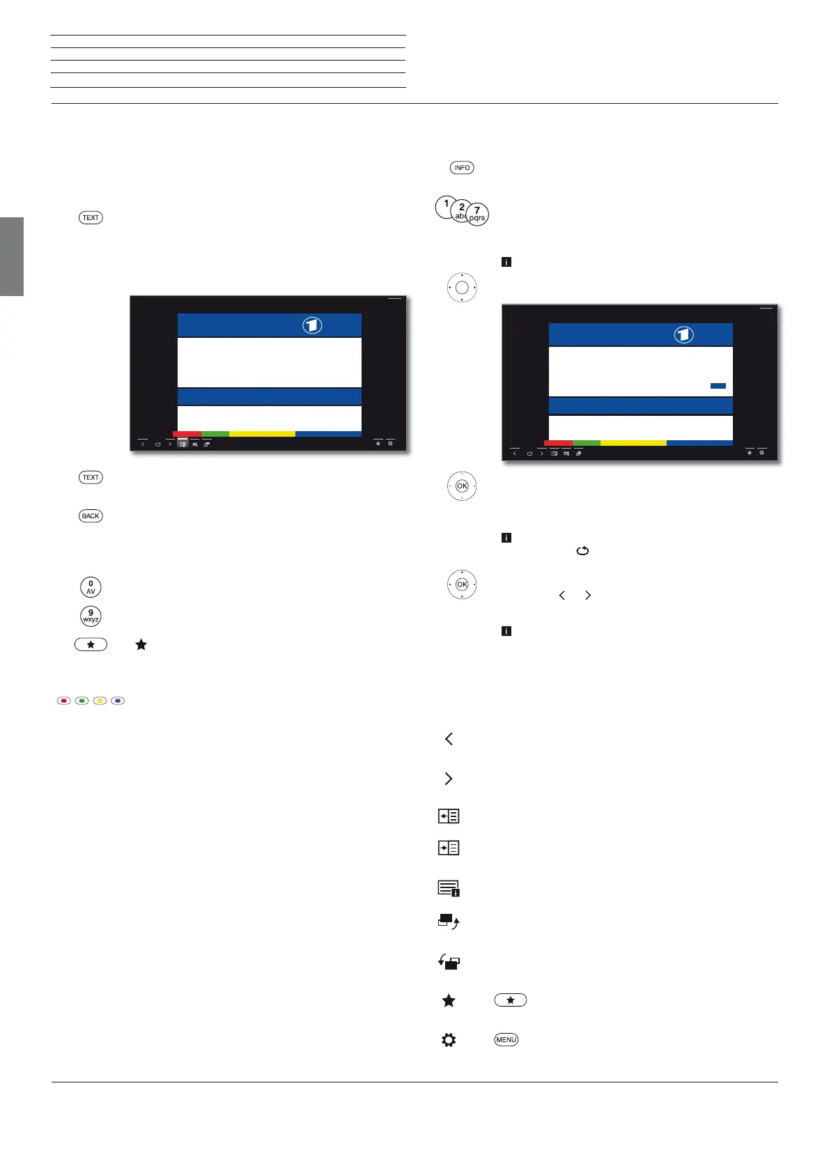 Key functions for Standard Teletext operation