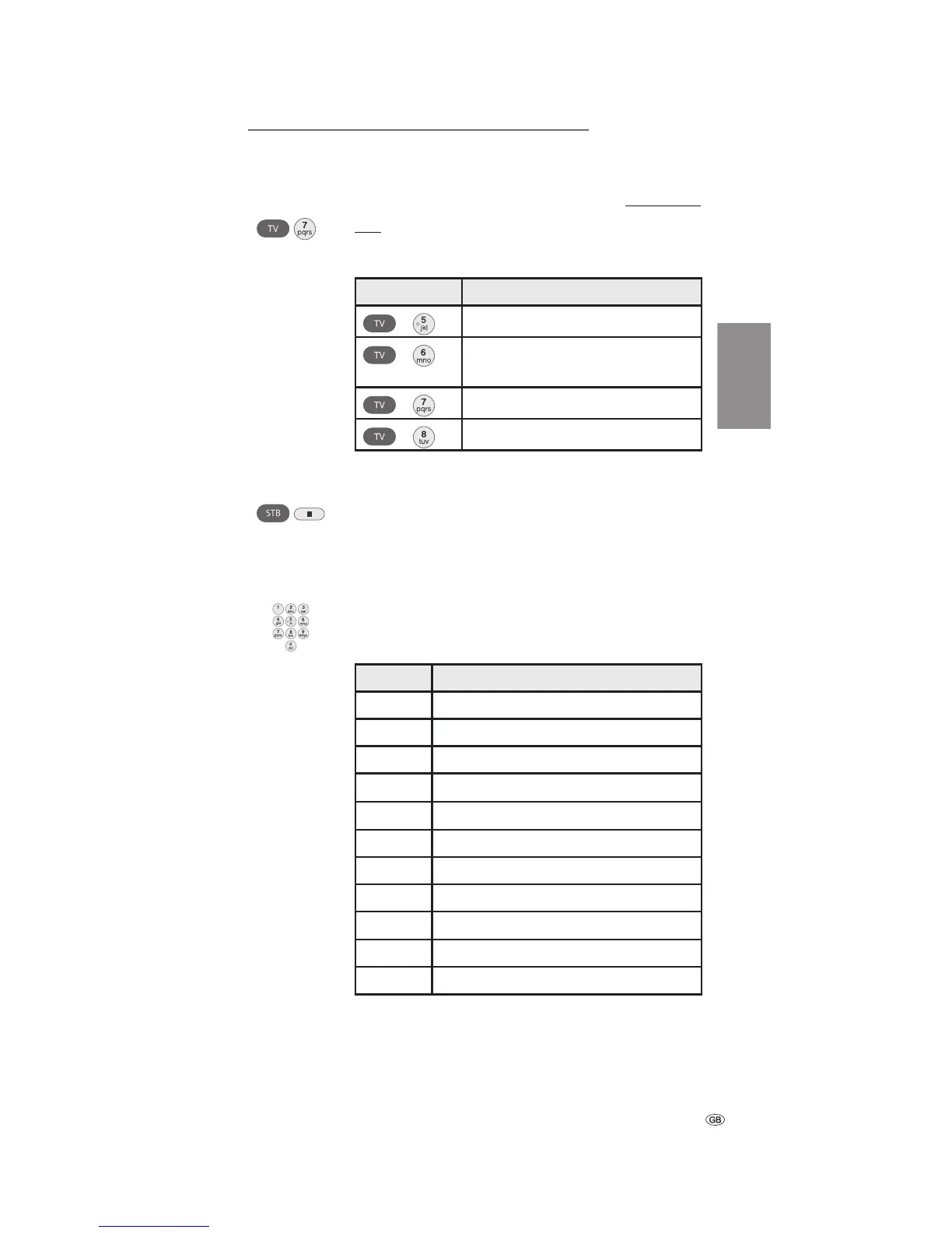 The keys STB, DVD and AUDIO can be set as follows:
