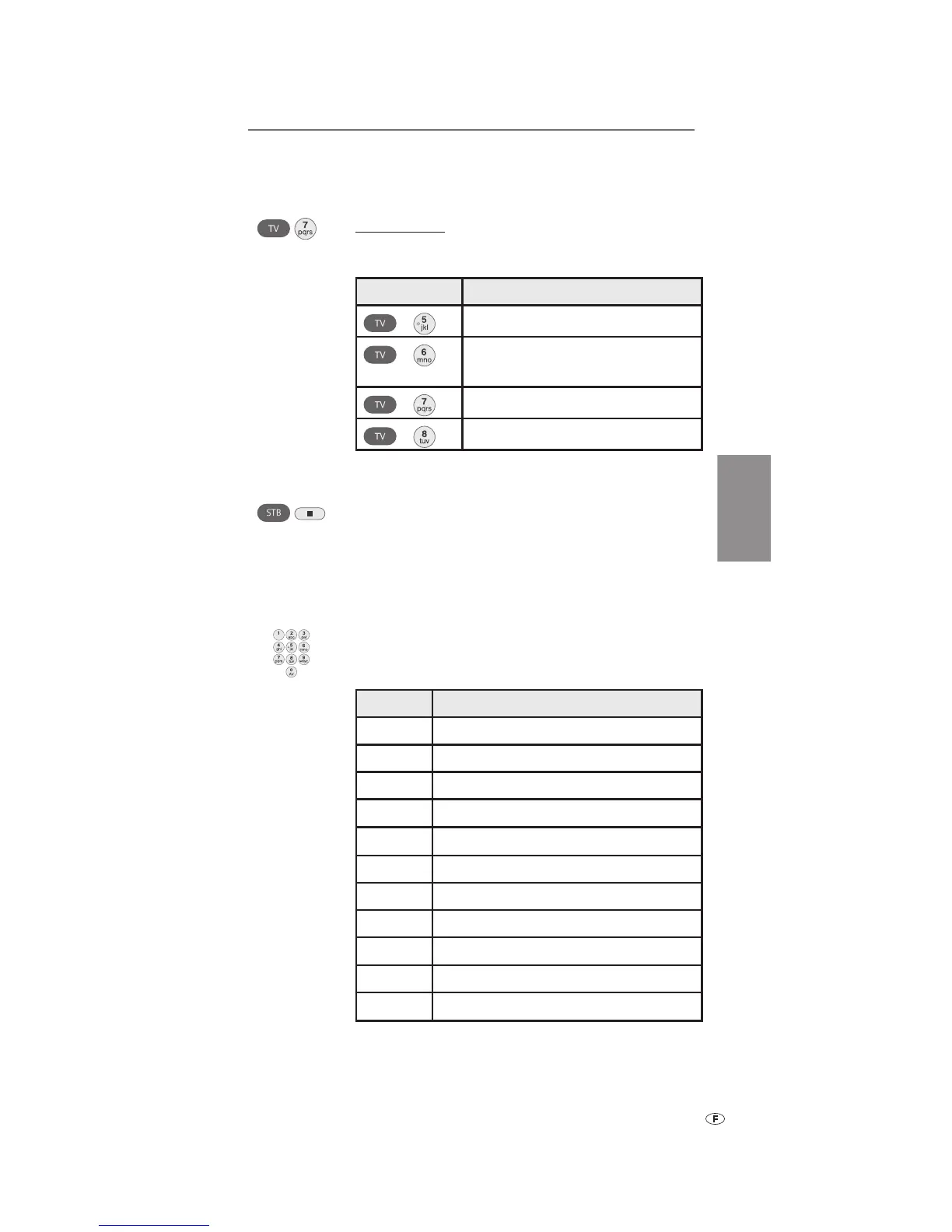 Les touches STB, DVD et AUDIO peuvent être configurées de la manière suivante :