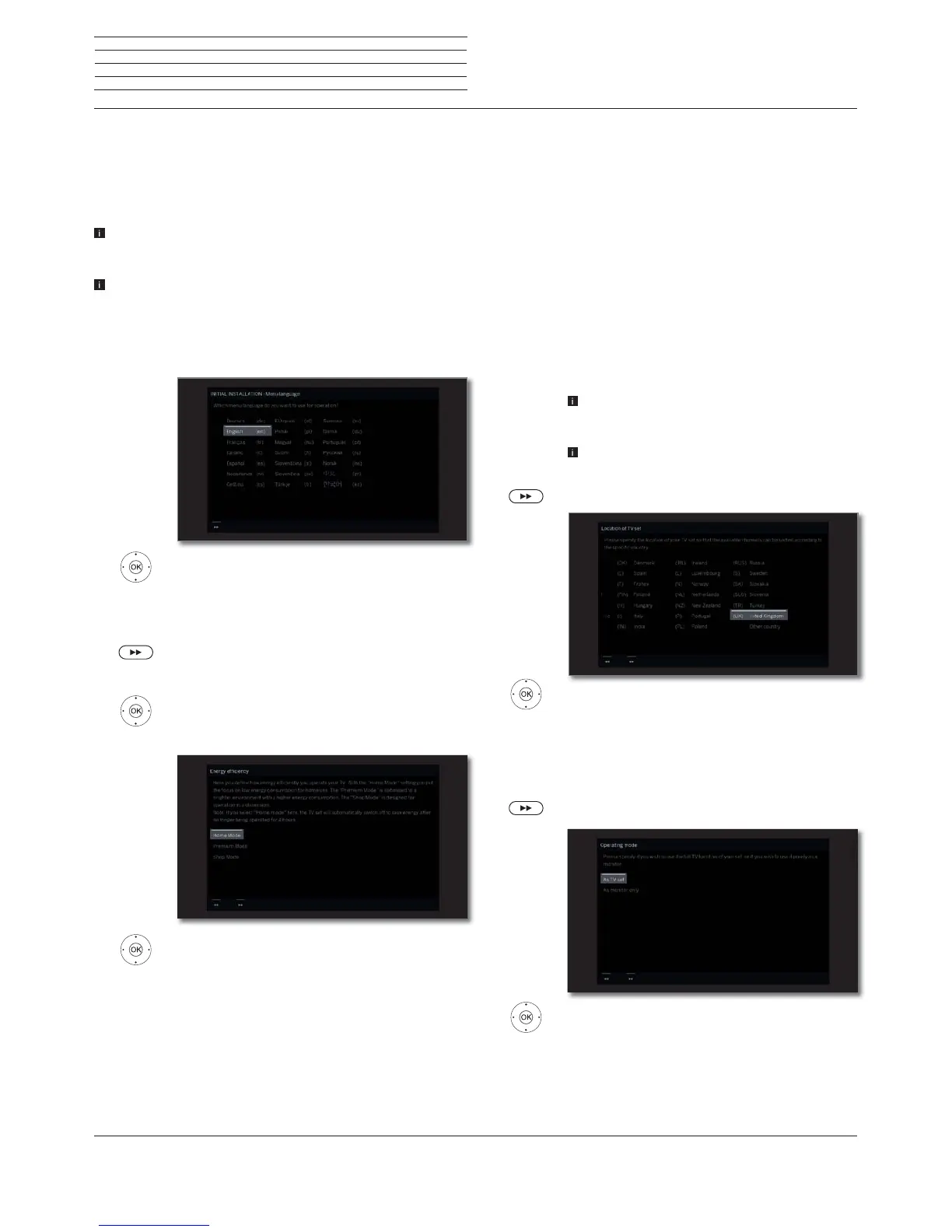 Select Location of TV set (national defaults