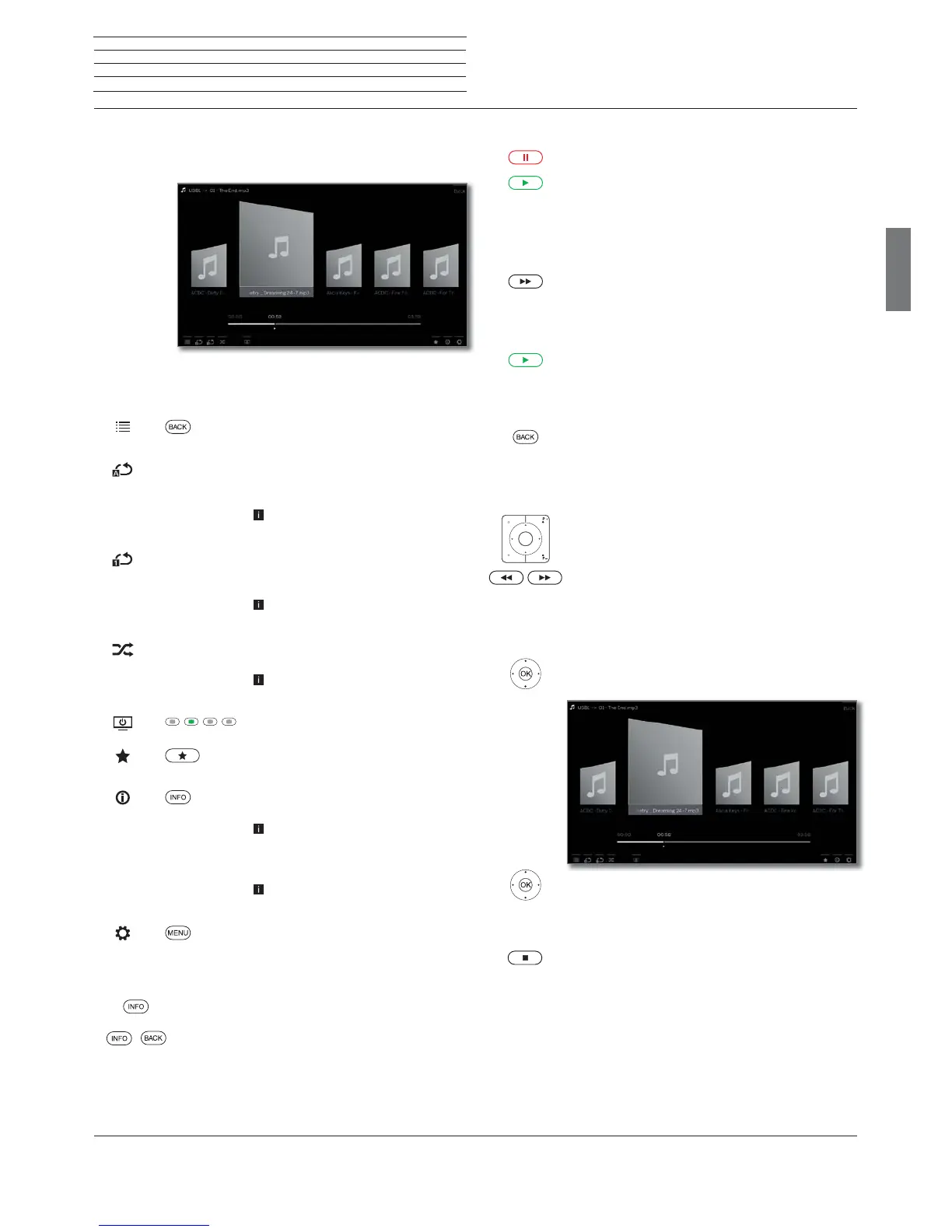 Description of the symbols in the status display for audio playback