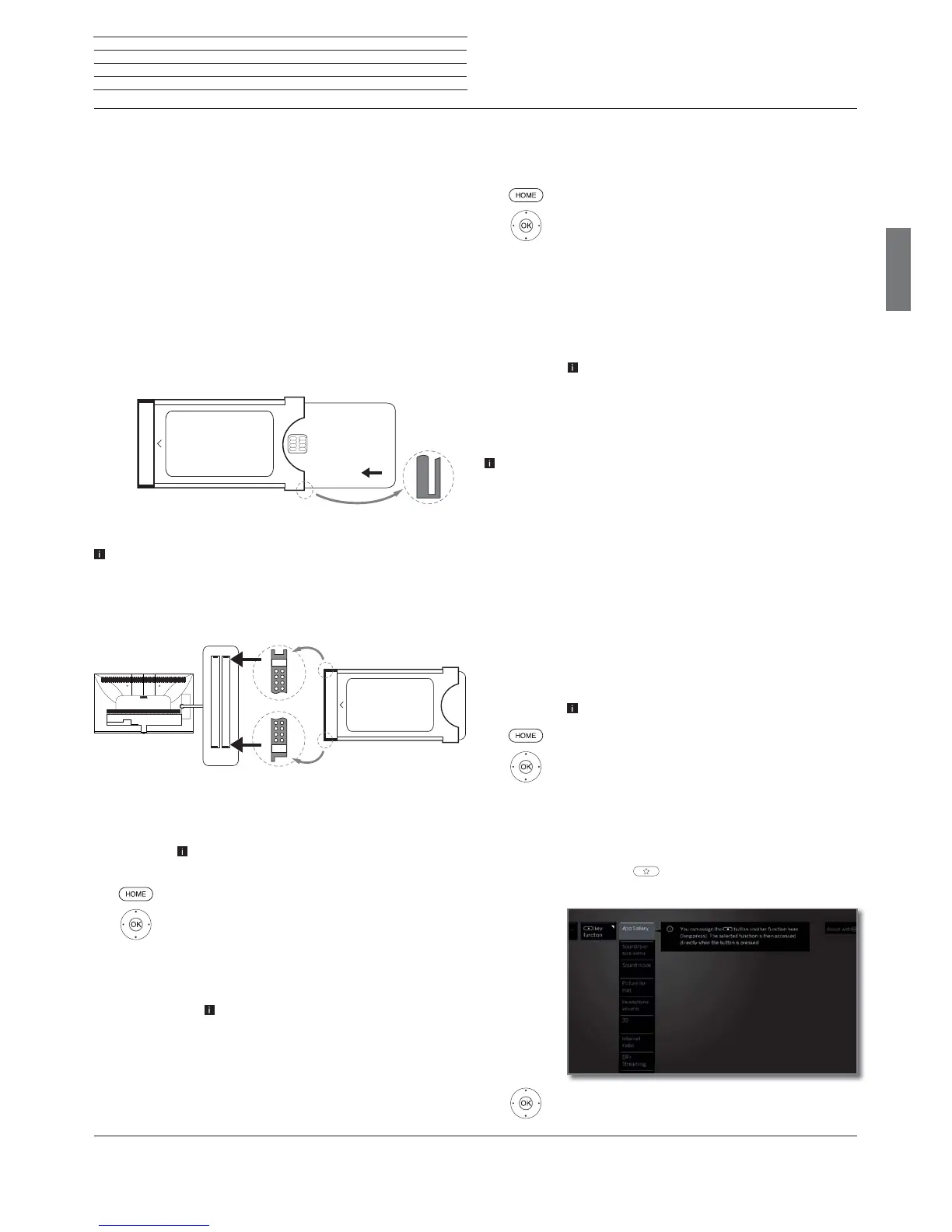 Inserting the CA module into the TV set’s CI slot