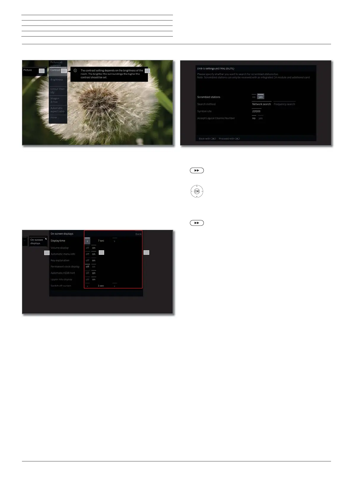 Navigation: Selection of elements (example: On-screen displays)