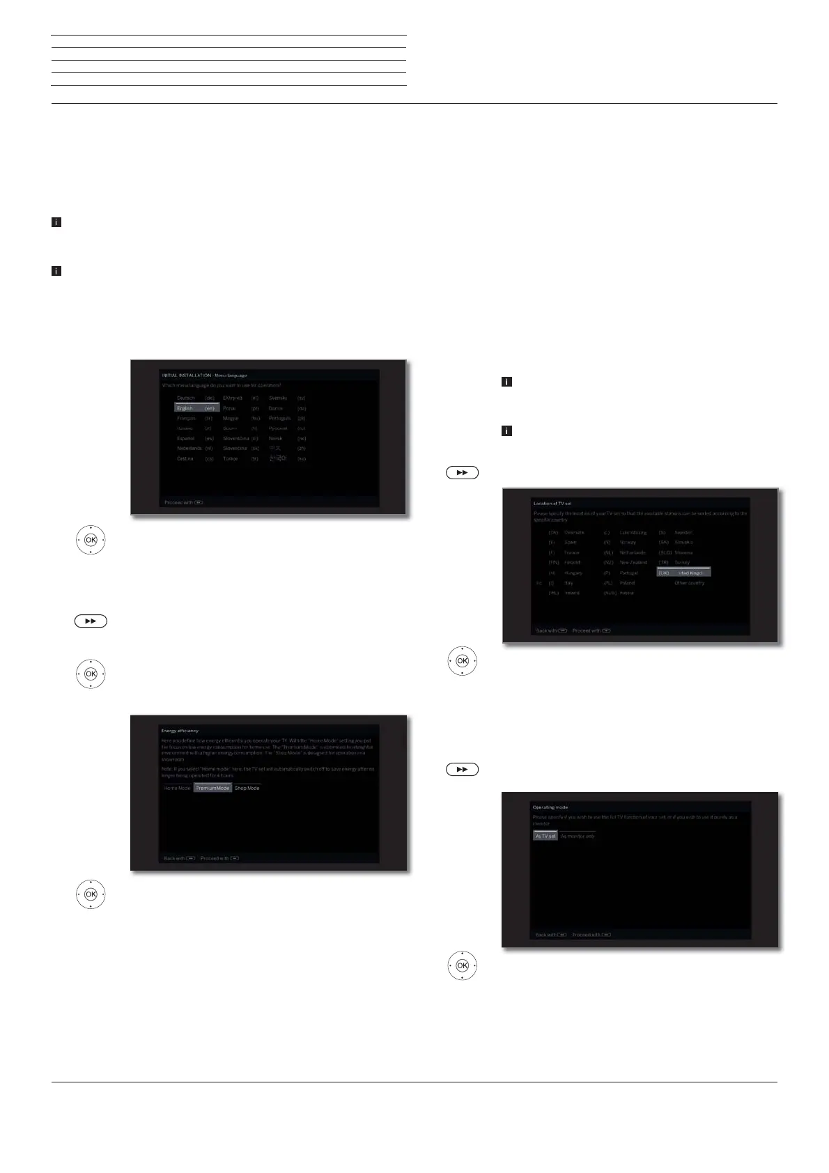 Select Location of TV set (national defaults