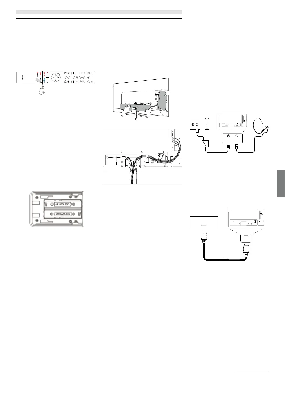 Příprava dálkového ovladače | Vložení nebo výměna baterií | Zapojení TV setu |