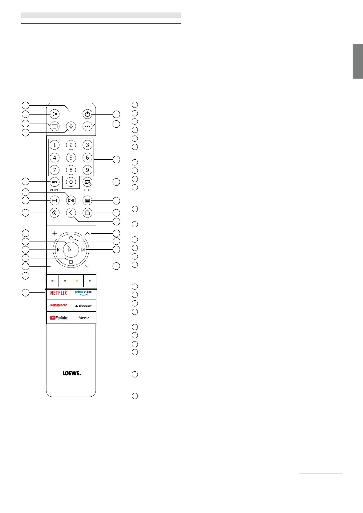 Enhedsnøgle. Med denne knap kan du betjene andre enheder med Loewe-fjernbetjeningen.