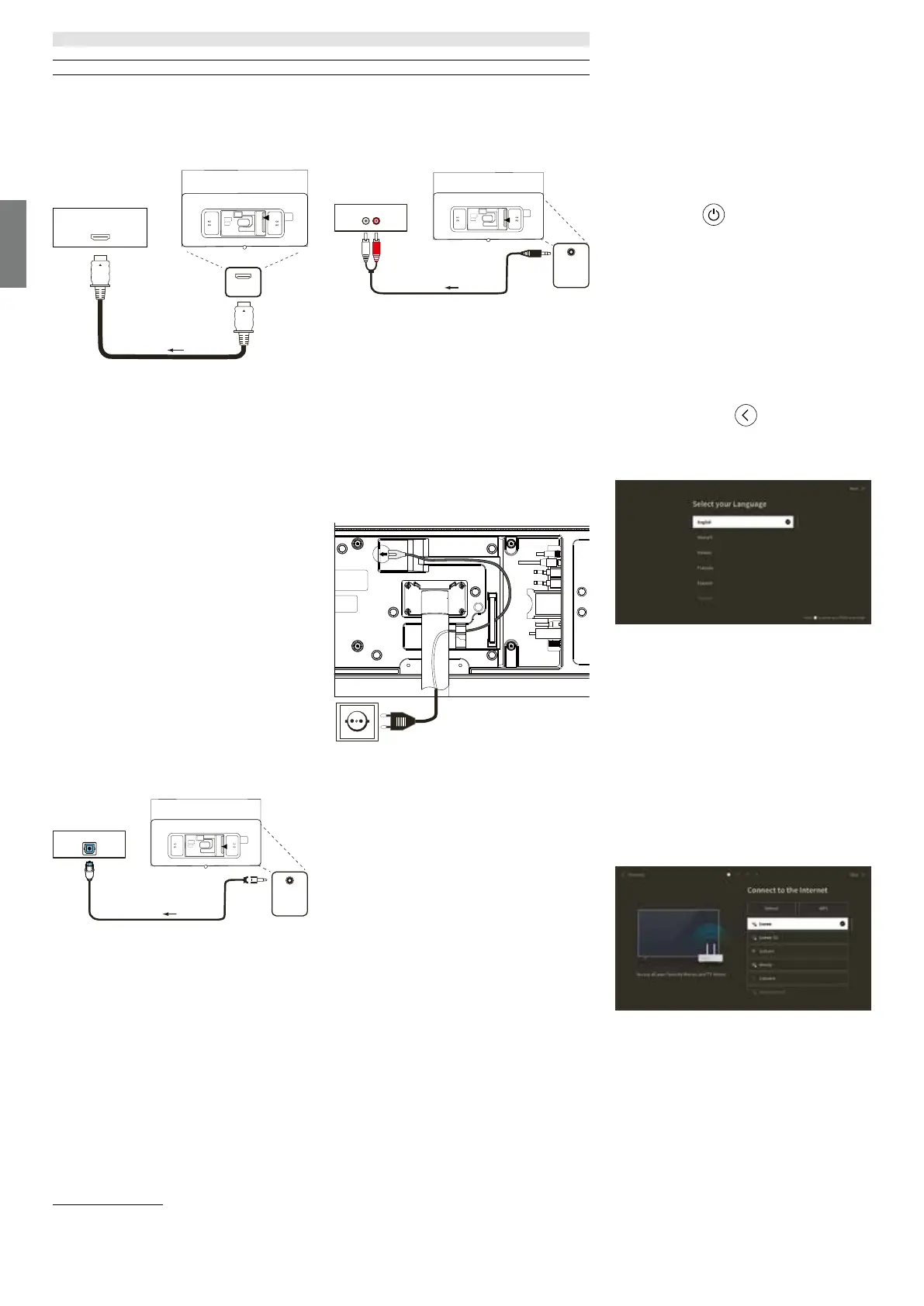 Connecting to an audio system via HDMI eARC | Connecting to an audio system via analogue audio cable