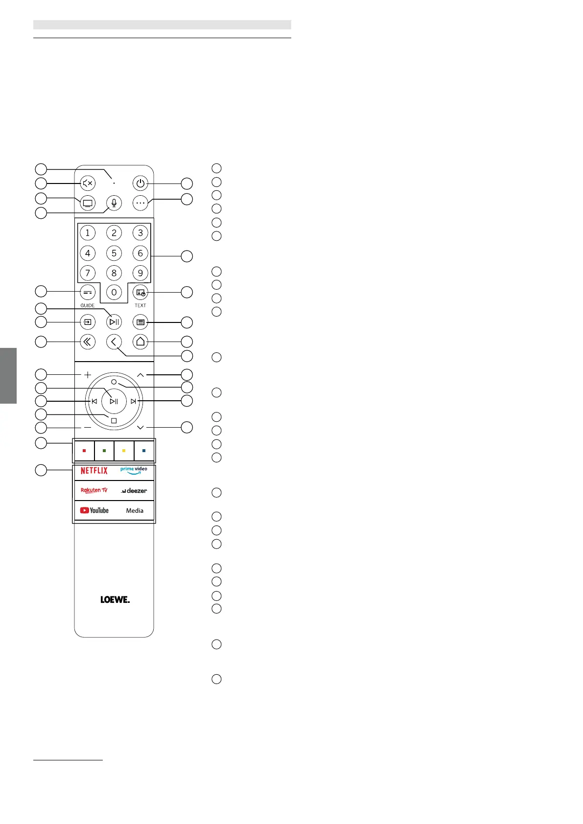Cihaz anahtarı. Bu düğme Loewe uzaktan kumandayla diğer cihazları kontrol edebilmenize imkan